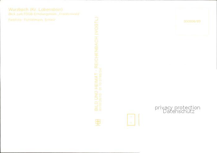 72243403 Wurzbach FDGB Erholungsheim Frankenwald postalisch nicht gelaufen Erhaltung siehe scans KatCode: 11110008235055