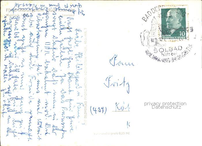 72017822 alte Postkarte Wurzbach FDGB Erholungsheim Rudi Arnstadt Lesesaal postalisch gelaufen Erhaltung siehe scans KatCode: 11110008235055