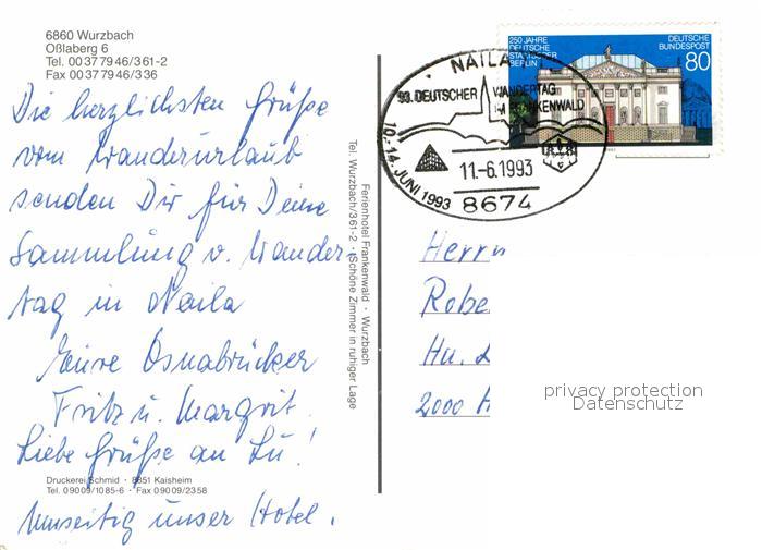 72678702 alte Postkarte Wurzbach Ferienhotel Frankenwald Restaurant rotte See postalisch gelaufen Erhaltung siehe scans [FriedD77] KatCode: 11110008235055