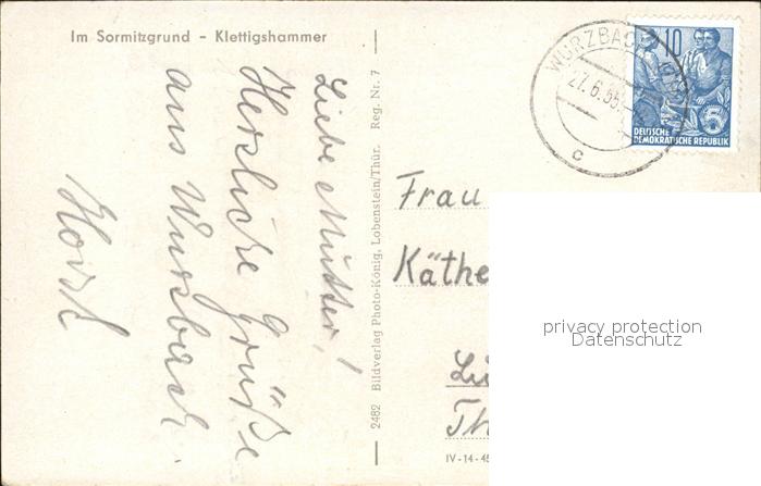 72134219 alte Postkarte Wurzbach Im Sormitzgrund postalisch gelaufen Erhaltung siehe scans KatCode: 11110008235055