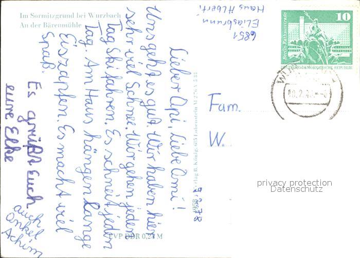 72266443 alte Postkarte Wurzbach im Sornitzgrund an Baerenmuehle postalisch gelaufen Erhaltung siehe scans KatCode: 11110008235055