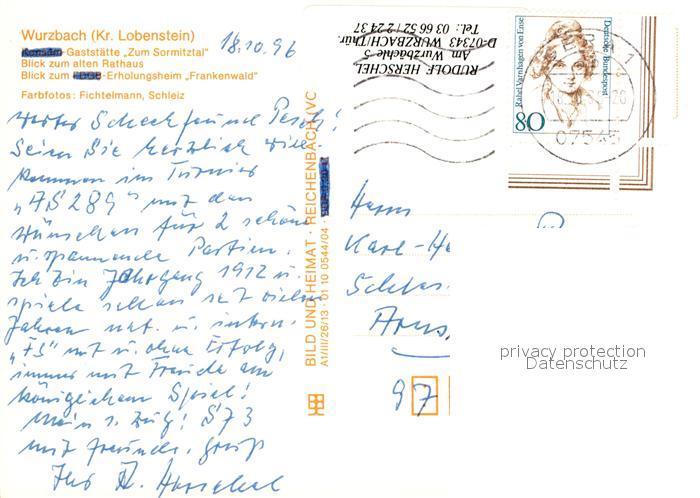 73241763 alte Postkarte Wurzbach Restaurant Zum Sormitztal postalisch gelaufen Erhaltung siehe scans [LiesaD40] KatCode: 11110008235055