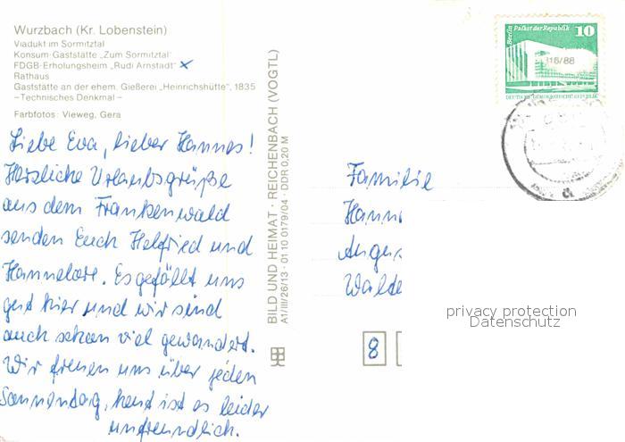 72767183 alte Postkarte Wurzbach Viadukt im Sormitztal Gaststaette Zum Sormitztal FDGB Erholungsheim Rudi Arnstadt Rathaus Gaststaette Heinrichshuette postalisch gelaufen Erhaltung siehe scans [WerneD78] KatCode: 11110008235055
