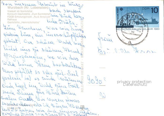 72322776 alte Postkarte Wurzbach Viadukt im Sormitztal Konsum Gaststaette FDGB Heim Rudi Arnstadt Rathaus Gaststaette Heinrichshuette postalisch gelaufen Erhaltung siehe scans KatCode: 11110008235055