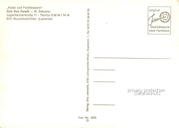 73724414 Wurzelbach Kiosk und Fischbraterei Zum Don Forelli Brunnen Terrasse Teich postalisch nicht gelaufen Erhaltung siehe scans [WerneD78] KatCode: 11110006431014