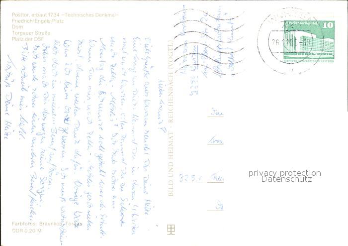 72370738 alte Postkarte Wurzen Sachsen Posttor 18. Jhdt. Technisches Denkmal Friedrich Engels Platz Dom Torgauer Strasse Platz der DSF postalisch gelaufen Erhaltung siehe scans KatCode: 11110014383340