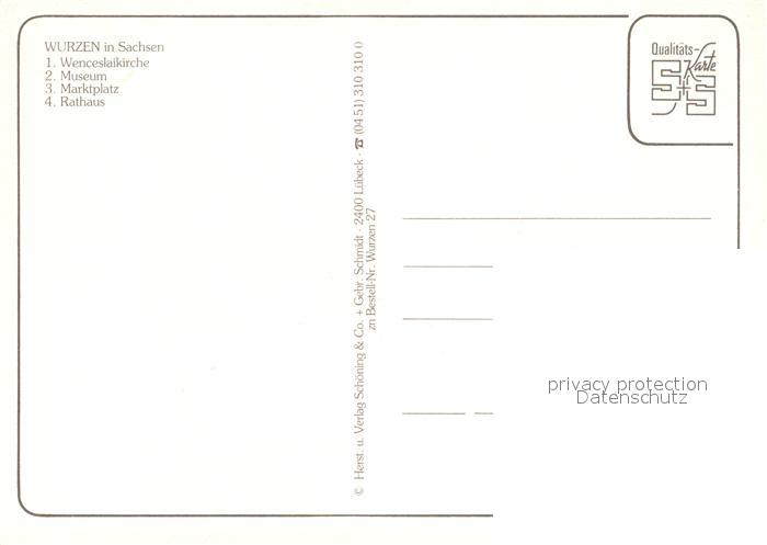 73181493 Wurzen Sachsen Wenceslaikirche Museum Marktplatz Rathaus postalisch nicht gelaufen Erhaltung siehe scans [WerneD78] KatCode: 11110014383340