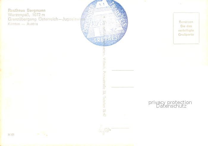 73092834 Wurzenpass Rasthaus Bergmann postalisch nicht gelaufen Erhaltung siehe scans [PaolaD17] KatCode: 11390211020702