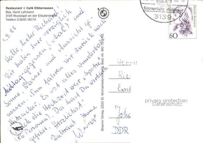 72533562 alte Postkarte Wussegel Elbterrassen Gastraum postalisch gelaufen Erhaltung siehe scans [WerneD78 kt116box] KatCode: 11110003354009