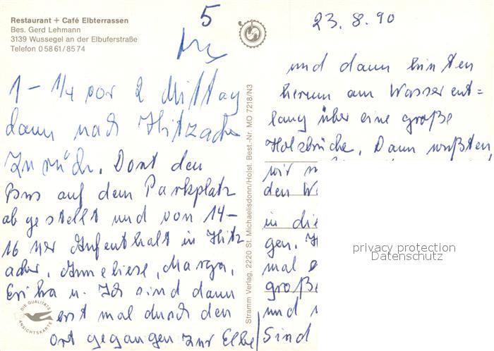 73054647 Wussegel Restaurant Elbterrassen postalisch nicht gelaufen Erhaltung siehe scans [NatalD47] KatCode: 11110003354009