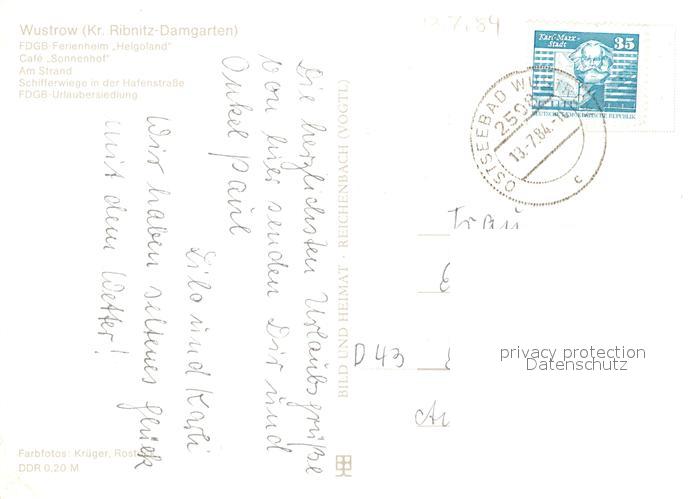 73162061 alte Postkarte Wustrow Ostseebad Ferienheim Helgoland Cafe Sonnenhof Schifferwiege Hafenstrasse postalisch gelaufen Erhaltung siehe scans [PaolaD17] KatCode: 11110013057094