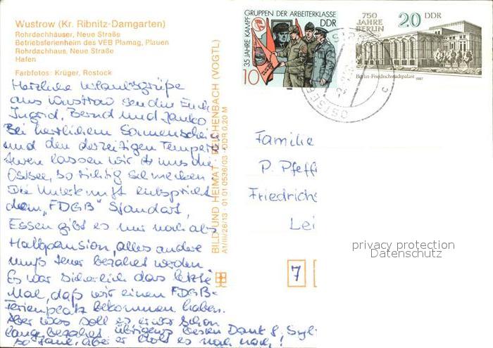 72312402 alte Postkarte Wustrow Ostseebad Rohrdachhaeuser Neue Str Betriebsferienheim VEB Plauen Hafen postalisch gelaufen Erhaltung siehe scans KatCode: 11110013057094