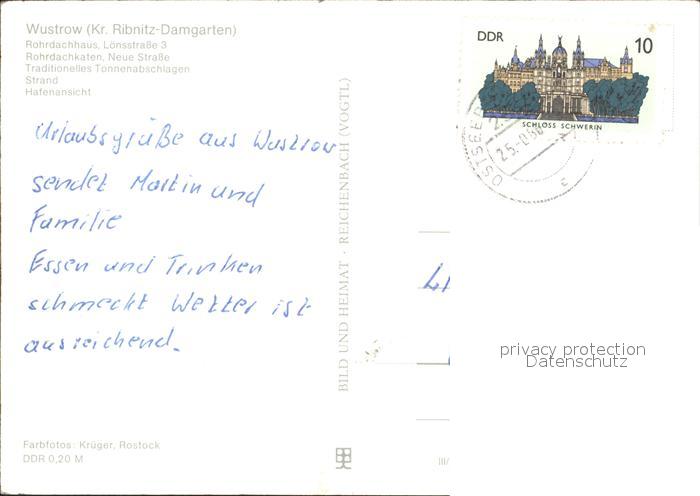 72136018 alte Postkarte Wustrow Ostseebad Rohrdachhaus Rohrdachkaten Tonnenabschlagen Tradition Strand Hafen postalisch gelaufen Erhaltung siehe scans KatCode: 11110013057094