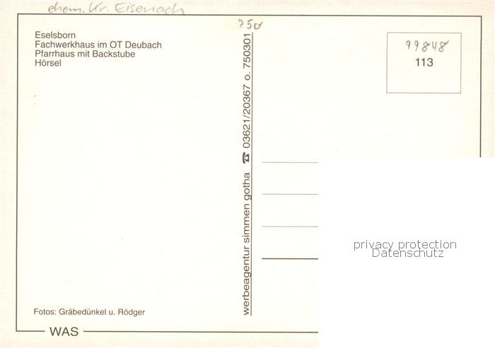 73840265 Wutha-Farnroda OT Schoenau Eselsborn Fachwerkhaus im OT Deubach Pfarrhaus mit Backstube Hoersel postalisch nicht gelaufen Erhaltung siehe scans [WerneD78] KatCode: 11110016063092
