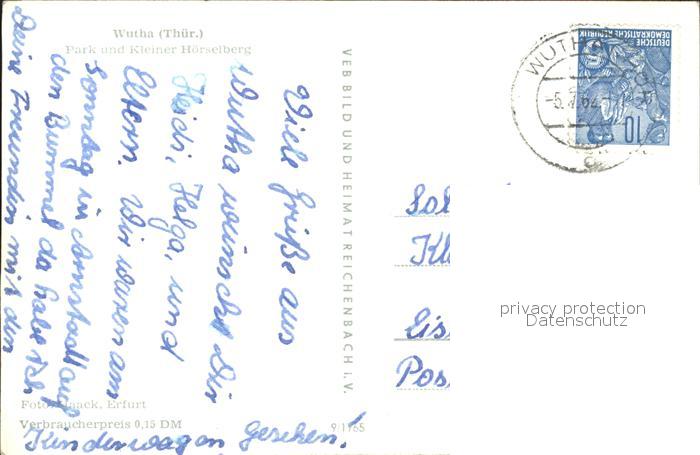 72272376 alte Postkarte Wutha-Farnroda Park und kleiner Hoerstelberg postalisch gelaufen Erhaltung siehe scans KatCode: 11110016063092