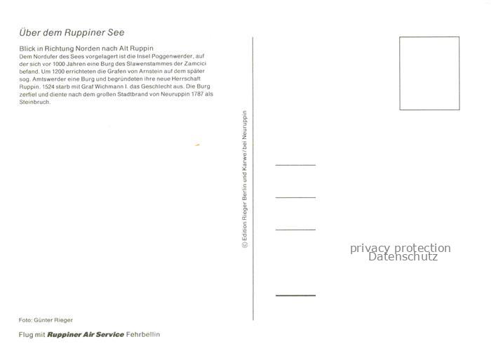 74043177 Wuthenow Neuruppin Brandenburg Fliegeraufnahme mit Ruppiner See und Lanke postalisch nicht gelaufen Erhaltung siehe scans [WerneD78] KatCode: 11110012068320