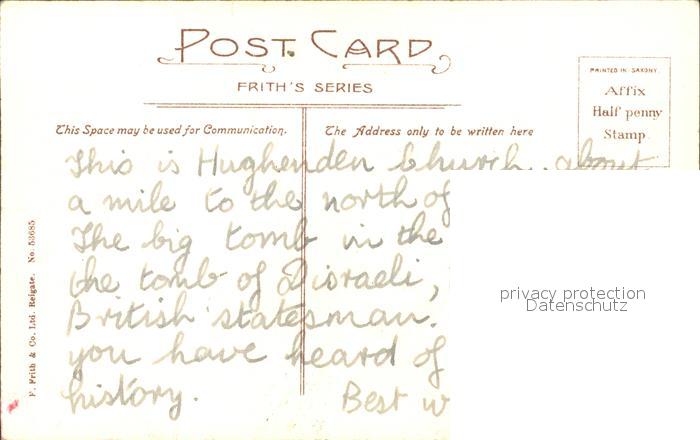 11777476 Wycombe Wycombe Hughenden Church Cemetary Frith’s Series postalisch nicht gelaufen Erhaltung siehe scans KatCode: 11570