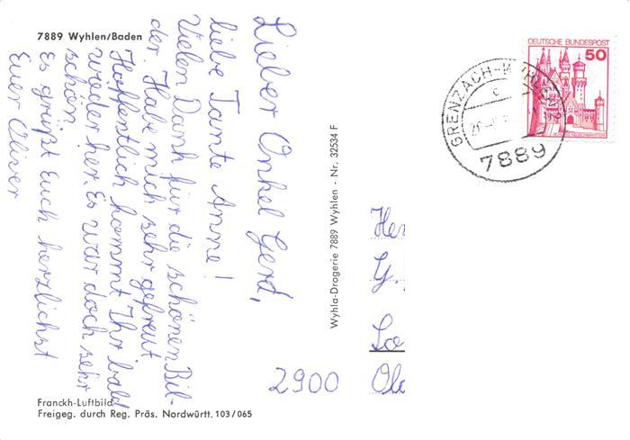 73974419 alte Postkarte Wyhlen Fliegeraufnahme postalisch gelaufen Erhaltung siehe scans [FriedD77] KatCode: 11110008336105