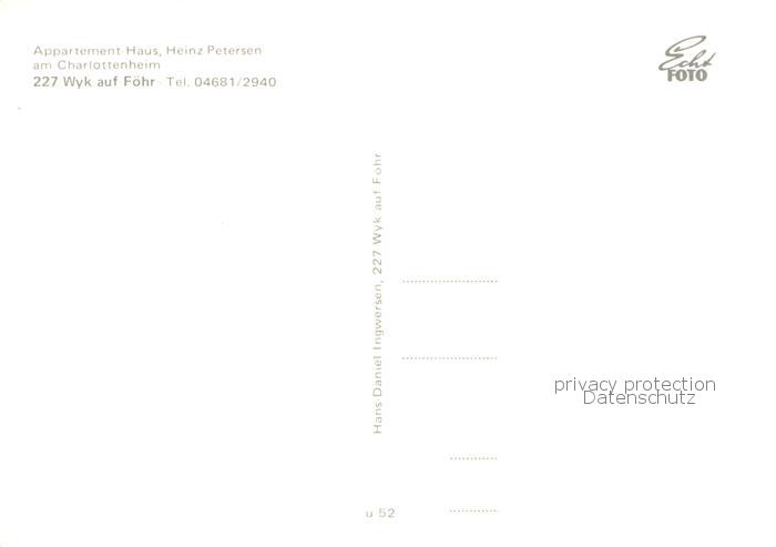 73768555 Wyk Foehr Appartementhaus Petersen am Charlottenheim Details postalisch nicht gelaufen Erhaltung siehe scans [WerneD78] KatCode: 11110001054164