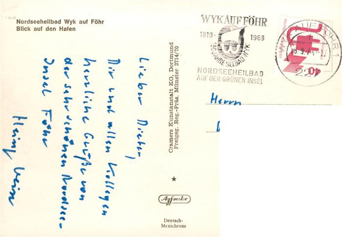 73873295 alte Postkarte Wyk Foehr Blick auf den Hafen Fliegeraufnahme postalisch gelaufen Erhaltung siehe scans [WerneD78] KatCode: 11110001054164
