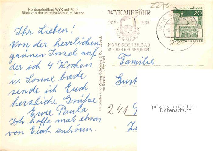 72886941 alte Postkarte Wyk Foehr Blick von der Mittelbruecke zum Strand postalisch gelaufen Erhaltung siehe scans [WerneD78] KatCode: 11110001054164