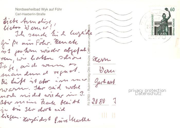 73059284 alte Postkarte Wyk Foehr Carl Haeberlin Strasse postalisch gelaufen Erhaltung siehe scans [WerneD78] KatCode: 11110001054164