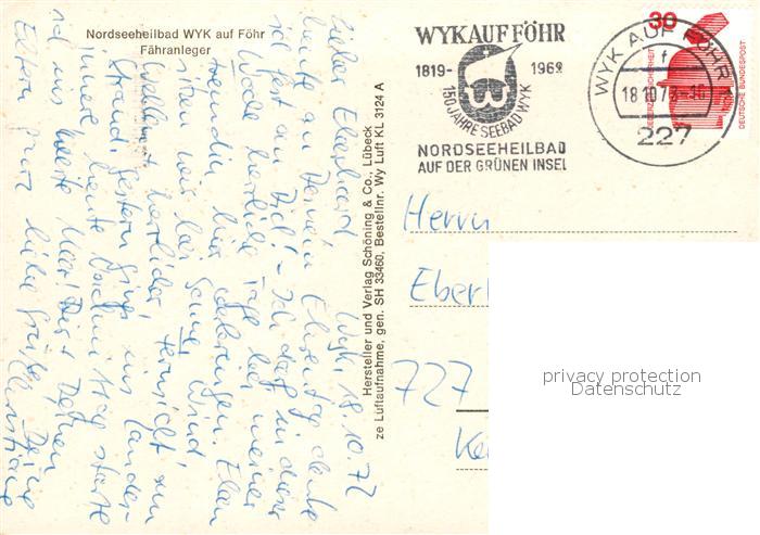 73829840 alte Postkarte Wyk Foehr Faehranleger Fliegeraufnahme postalisch gelaufen Erhaltung siehe scans [WerneD78] KatCode: 11110001054164