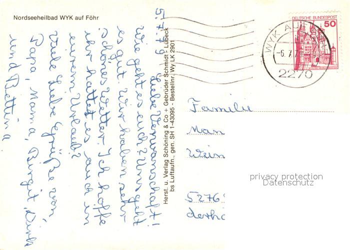 73726456 alte Postkarte Wyk Foehr Fliegeraufnahme postalisch gelaufen Erhaltung siehe scans [WerneD78] KatCode: 11110001054164