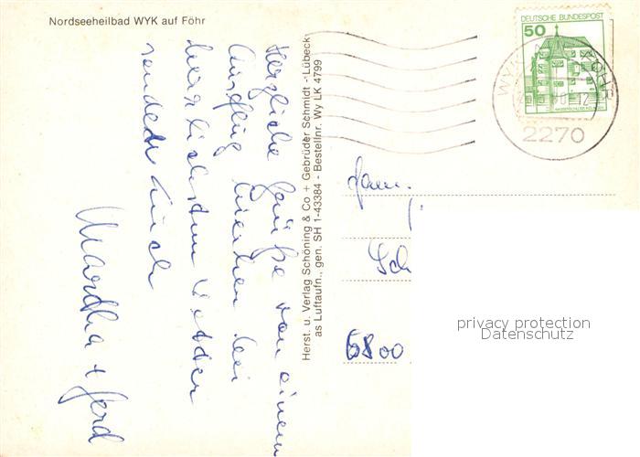 73010421 alte Postkarte Wyk Foehr Fliegeraufnahme postalisch gelaufen Erhaltung siehe scans [WerneD78] KatCode: 11110001054164