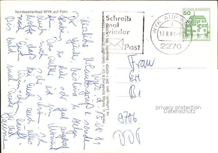 72522522 alte Postkarte Wyk Foehr Fliegeraufnahme postalisch gelaufen Erhaltung siehe scans KatCode: 11110001054164