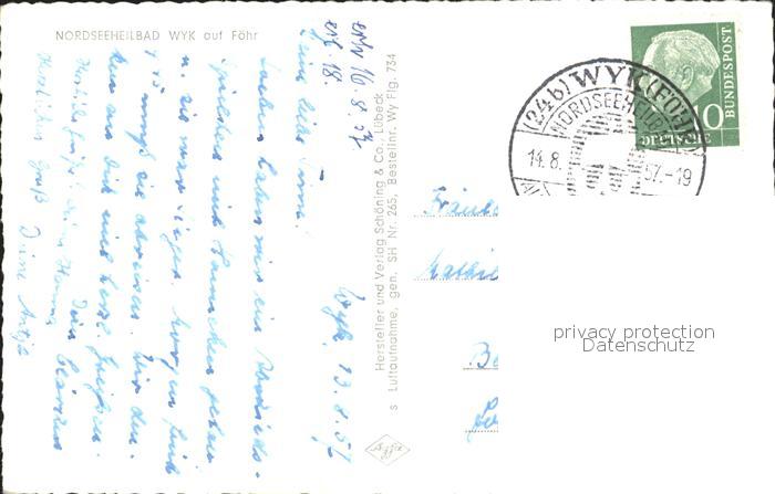72281905 alte Postkarte Wyk Foehr Fliegeraufnahme postalisch gelaufen Erhaltung siehe scans KatCode: 11110001054164