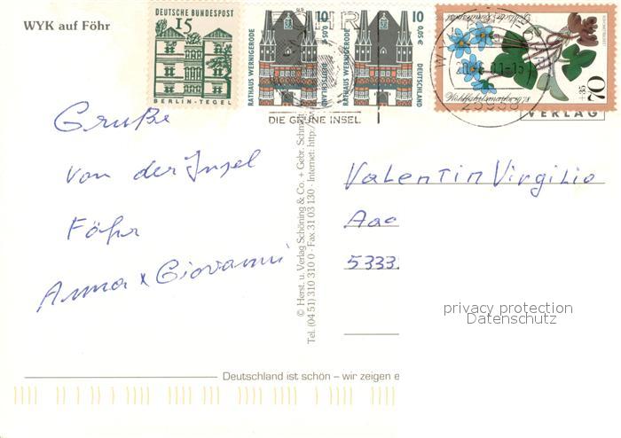 73613205 alte Postkarte Wyk Foehr Fliegeraufnahme mit Hafen Strand postalisch gelaufen Erhaltung siehe scans [LiesaD40] KatCode: 11110001054164