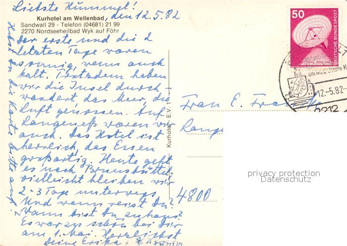 73091760 alte Postkarte Wyk Foehr Fliegeraufnahme Schwimmbad Strand Kurhotel postalisch gelaufen Erhaltung siehe scans [KathaD81] KatCode: 11110001054164