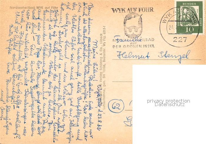 73726026 alte Postkarte Wyk Foehr Fliegeraufnahme Strandpanorama postalisch gelaufen Erhaltung siehe scans [LiesaD40] KatCode: 11110001054164