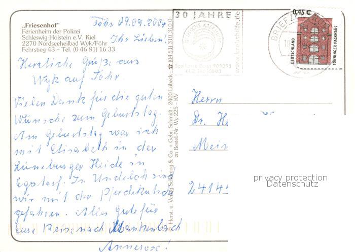 73859384 alte Postkarte Wyk Foehr Friesenhof Ferienheim der Polizei postalisch gelaufen Erhaltung siehe scans [FriedD77] KatCode: 11110001054164