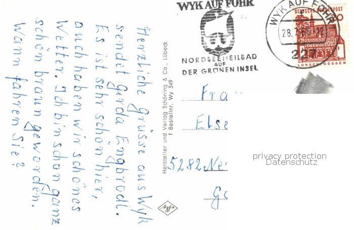 72895766 alte Postkarte Wyk Foehr Hafen Sonnenaufgang am Meer Blumengrotte Strand postalisch gelaufen Erhaltung siehe scans [FriedD77] KatCode: 11110001054164
