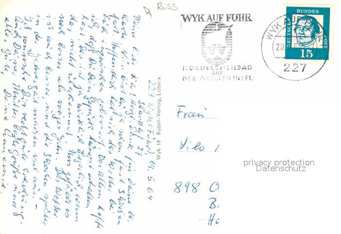 72790853 alte Postkarte Wyk Foehr Hafen Suedstrand Kurmittelhaus Sankt Nikolaikirche postalisch gelaufen Erhaltung siehe scans [AndreD76] KatCode: 11110001054164