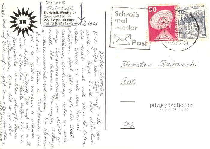 73760905 alte Postkarte Wyk Foehr Kurklinik Westfalen Strand postalisch gelaufen Erhaltung siehe scans [WerneD78] KatCode: 11110001054164