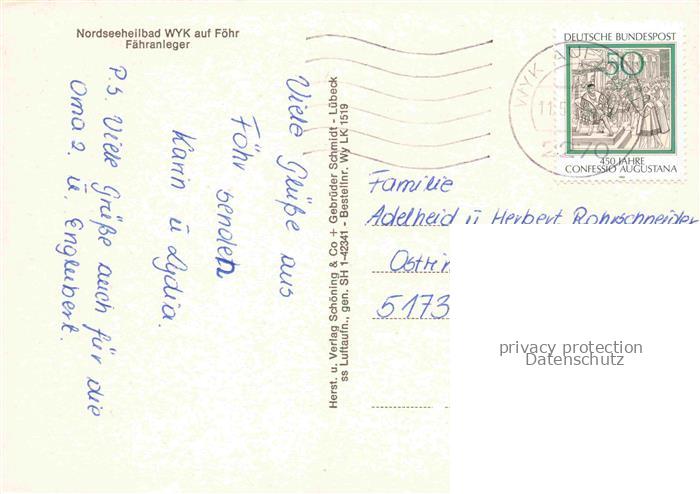 74110206 WYK FoeHR Nordfriesland Faehranleger Fliegeraufnahme postalisch gelaufen Erhaltung siehe scans [WerneD78] alte Postkarte Wern Katcode 11110001054164
