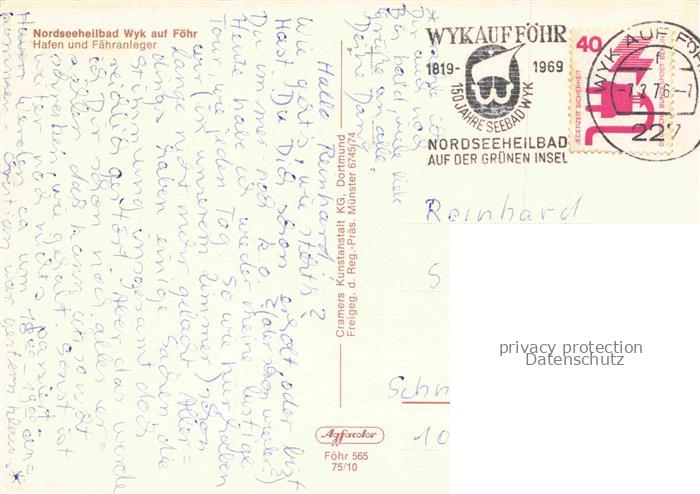 74038919 alte Postkarte WYK FoeHR Nordfriesland Hafen und Faehranleger Nordseeheilbad postalisch gelaufen Fliegeraufnahme Erhaltung siehe scans [FriedD77] KatCode: 11110001054164