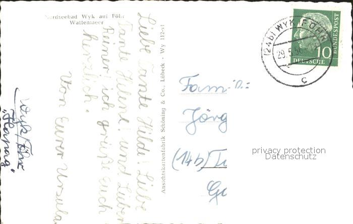 72197804 alte Postkarte Wyk Foehr Nordseebad Wattenmeer postalisch gelaufen Erhaltung siehe scans KatCode: 11110001054164