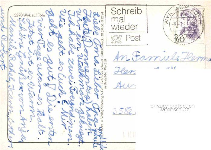 72869470 alte Postkarte Wyk Foehr Rathaus Carl-Haeberlin-Strasse Hafen postalisch gelaufen Erhaltung siehe scans [NatalD47] KatCode: 11110001054164