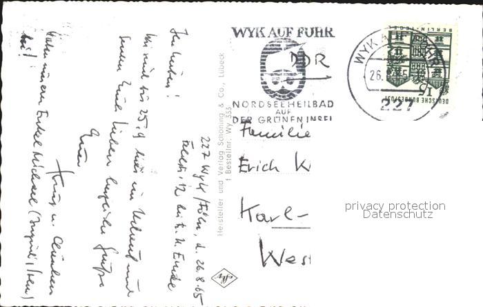 72405171 alte Postkarte Wyk Foehr Robbe Kirche Windmuehle Hafen postalisch gelaufen Erhaltung siehe scans KatCode: 11110001054164