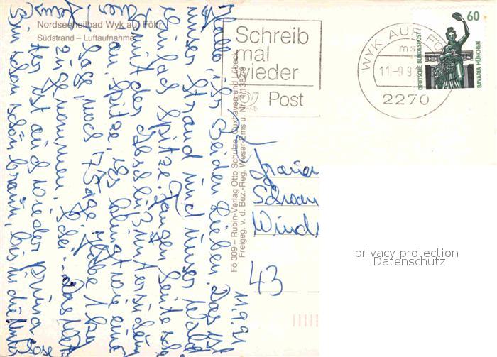 72655675 alte Postkarte Wyk Foehr Strand Fliegeraufnahme postalisch gelaufen Erhaltung siehe scans [AndreD76] KatCode: 11110001054164