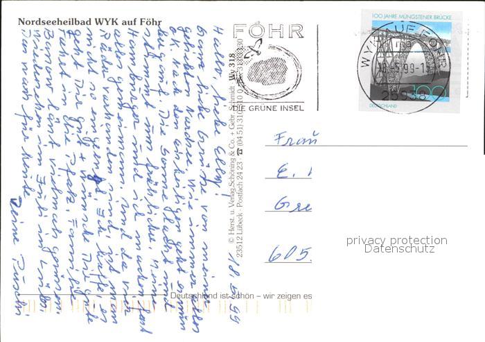 72592172 alte Postkarte Wyk Foehr Strand Mittelbruecke Suedstrand Hafen Mittelstrasse Rathaus Carl Haeberlin Strasse postalisch gelaufen Erhaltung siehe scans [WerneD78] KatCode: 11110001054164