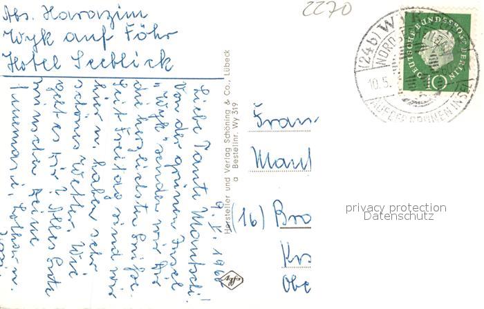 43498676 alte Postkarte Wyk Foehr Strand Seebr?cke Tracht postalisch gelaufen Erhaltung siehe scans [LiesaD40] KatCode: 11110001054164