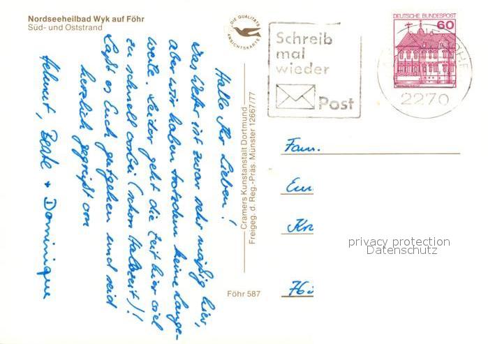 73321036 alte Postkarte Wyk Foehr Sued und Oststrand Fliegeraufnahme postalisch gelaufen Erhaltung siehe scans [WerneD78] KatCode: 11110001054164