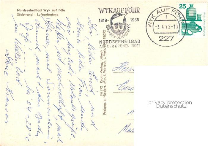 73211056 alte Postkarte Wyk Foehr Suedstrand Fliegeraufnahme postalisch gelaufen Erhaltung siehe scans [WerneD78] KatCode: 11110001054164