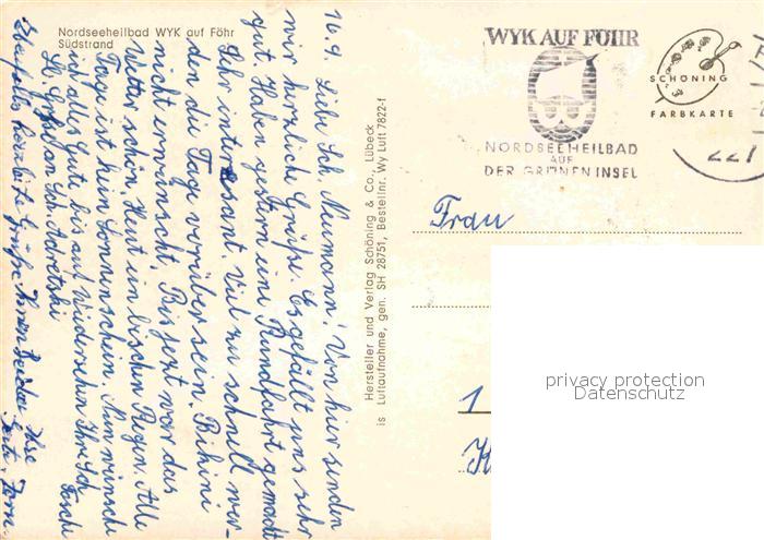 72725870 alte Postkarte Wyk Foehr Suedstrand Fliegeraufnahme postalisch gelaufen Erhaltung siehe scans [WerneD78] KatCode: 11110001054164
