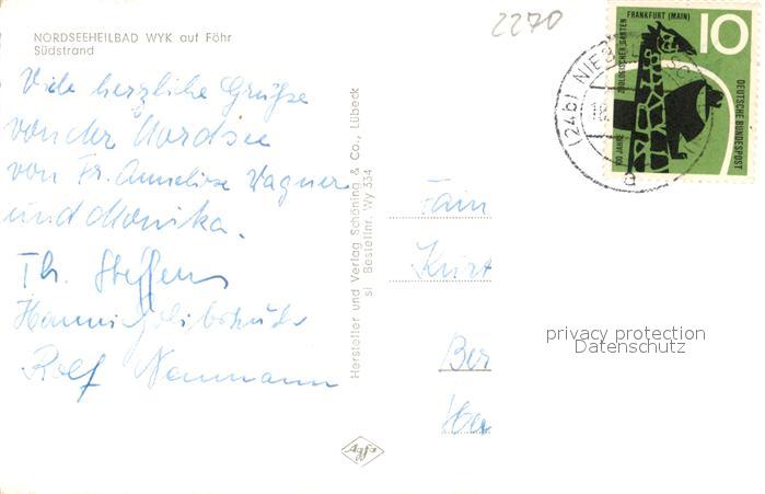 43352800 alte Postkarte Wyk Foehr Suedstrand Strandkoerbe postalisch gelaufen Erhaltung siehe scans [KathaD81] KatCode: 11110001054164